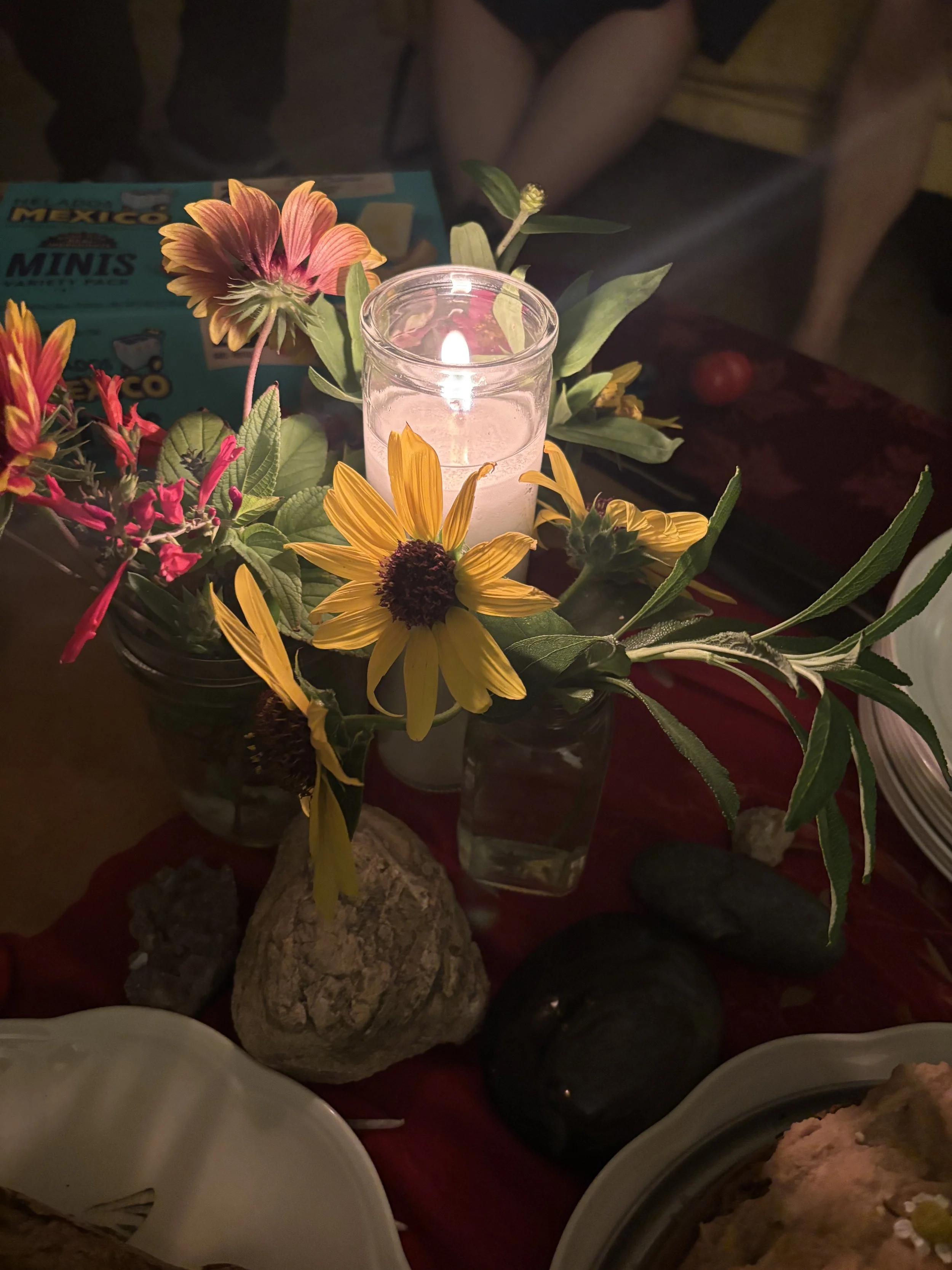 I gather members of the lgbtq+ community to share poetry around a candle lit altar covered in rocks and stones. The stones listen to the poetry and then we place them reverberating on the earth.